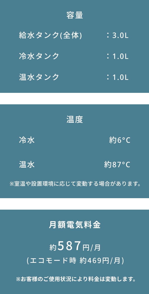 お客さまに月々お支払いいただく金額は、ウォーターサーバーのレンタル料金のみとなります。